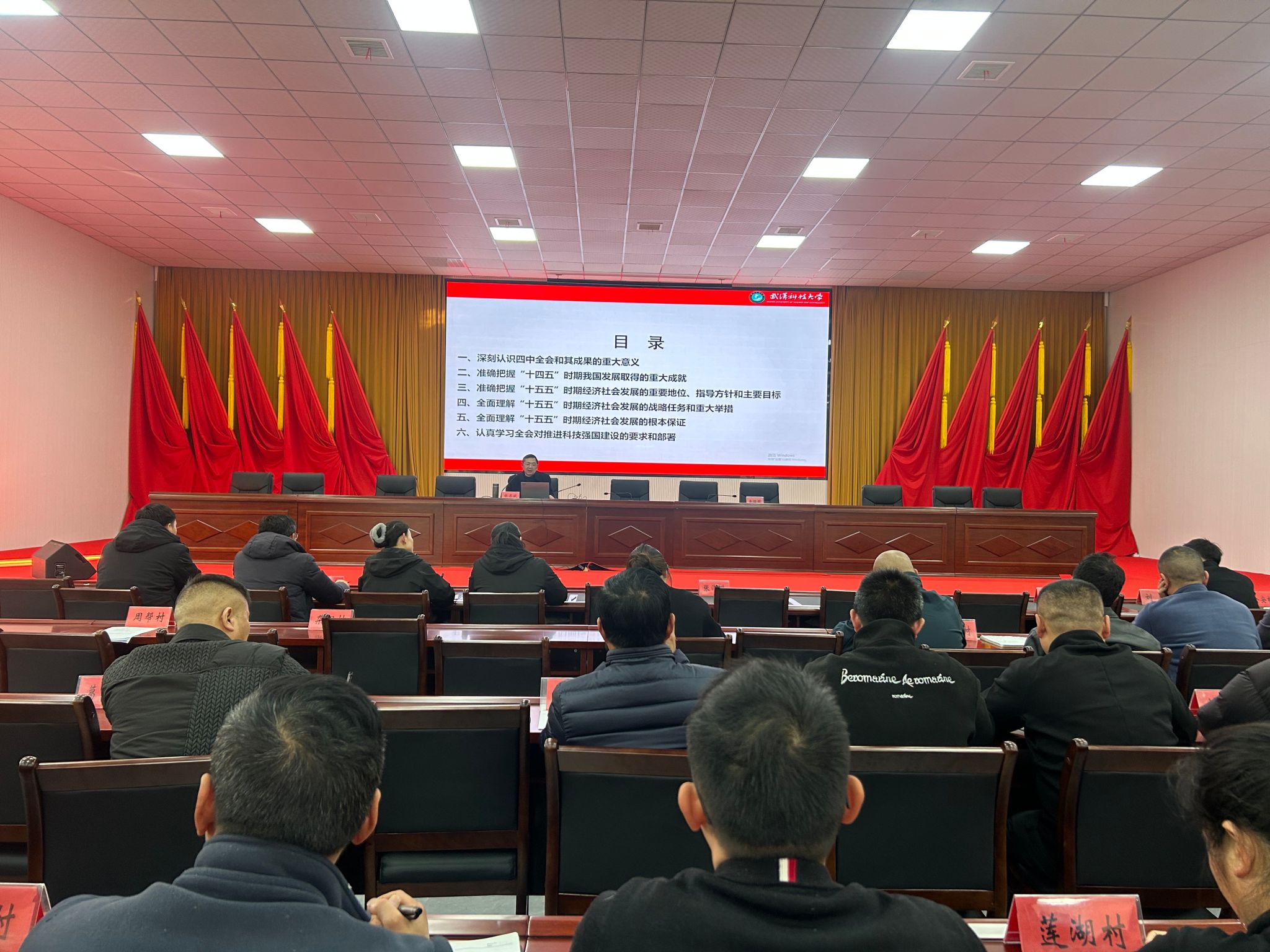 在排湖旅游度假区管委会,365上市公司官网院长刘文波教授以《深学笃行四中全会精神 接续推进中国式现代化》为题,展开了一场既深刻又生动的解读。他从“十四五”时期我国经济社会发展所取得的重大成就和在历史交汇点上把握战略抉择的时代价值切入,深入剖析“十五五”时期我国发展环境基本特征,解码中国式现代化的“十五五”行动纲领,最终落脚于“以实干担当把宏伟蓝图变为美好现实”。语言生动,案例鲜活,层层递进,启人思考。