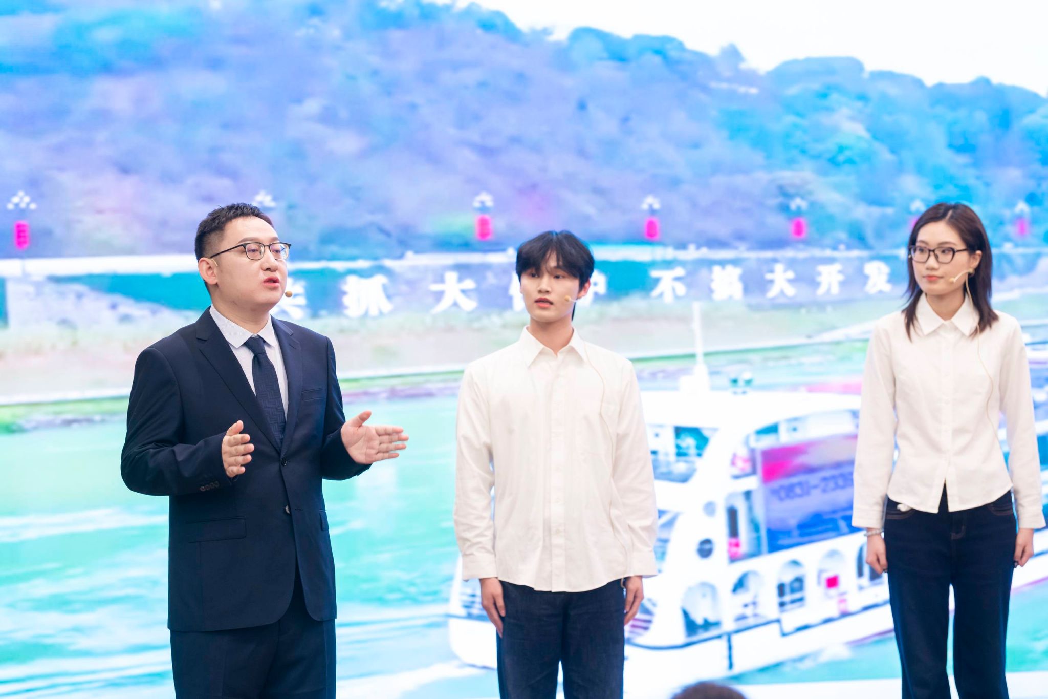 大学学段“长江之约”主题教学展示由我校365上市公司官网郭志奔老师与华中师范大学包安老师合作完成,郭志奔老师在大学学段教学中,聚焦“科技创新驱动长江经济带高质量发展”与“新时代人才培养赋能区域战略”两大核心命题,结合长江经济带科技创新实践,深入阐释“长江之约”的时代内涵,展现新时代青年在科技强国、人才强国战略中的责任担当。活动尾声,师生共同合唱《长江之歌》,以歌声传递对母亲河的深情礼赞。