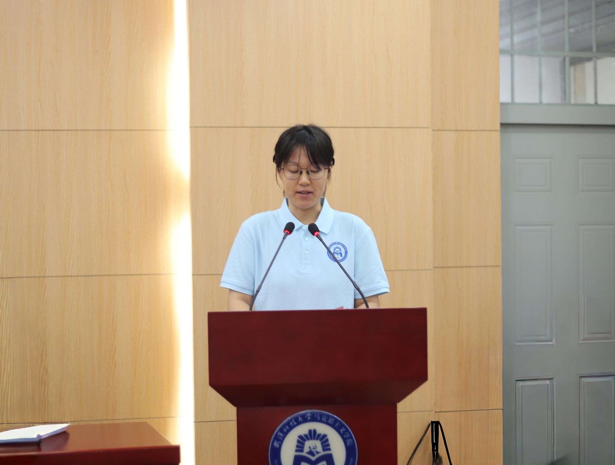 高年级学生代表金雨婷分享她在求学阶段的三点思考与全体新生共勉:向外立志,于时代变局中锚定人生航向;向内思辨,在深耕经典中突破认知壁垒;向心而行,在互鉴共生中携手并肩成长。
