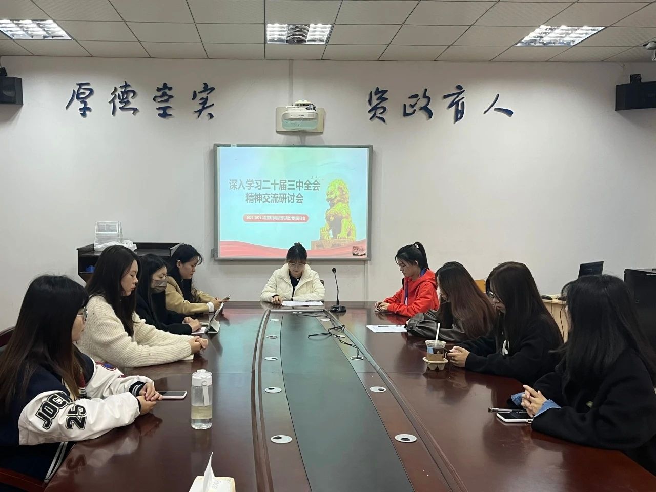 本网讯(通讯员王小玉)为深入学习贯彻党的二十届三中全会精神,切实提高发展对象的党性修养和思想觉悟,扎实做好发展对象的培养和教育工作,11月21日,365上市公司官网分党校组织本学期10名发展对象在41114会议室召开学习党的二十届三中全会精神交流研讨会。会议由组长王小玉同学主持。