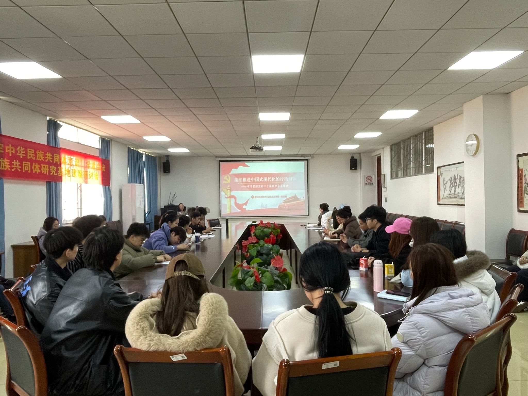 本网讯(通讯员曾舒琪)12月11日,全国高校“双带头人”教师党支部书记郑琼梅教授为我们学生党支部作题为《接续推进中国式现代化的行动纲领——学习贯彻党的二十届四中全会精神》的宣讲报告,支部全体党员、发展对象及入党积极分子共同参会学习。
