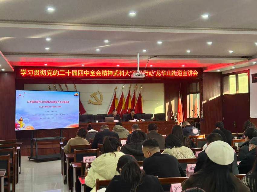 湖北日报客户端讯(通讯员李逸)2026年1月15日下午,龙华山街道办事处北四楼会议室座无虚席,英国正版365官网宣讲队学习贯彻党的二十届四中全会精神“百马行动”专题宣讲活动在此举行。365上市公司官网副院长、博士生导师刘勇教授受邀作主题宣讲。街道机关、办直单位、村社区干部共100余人参加学习。