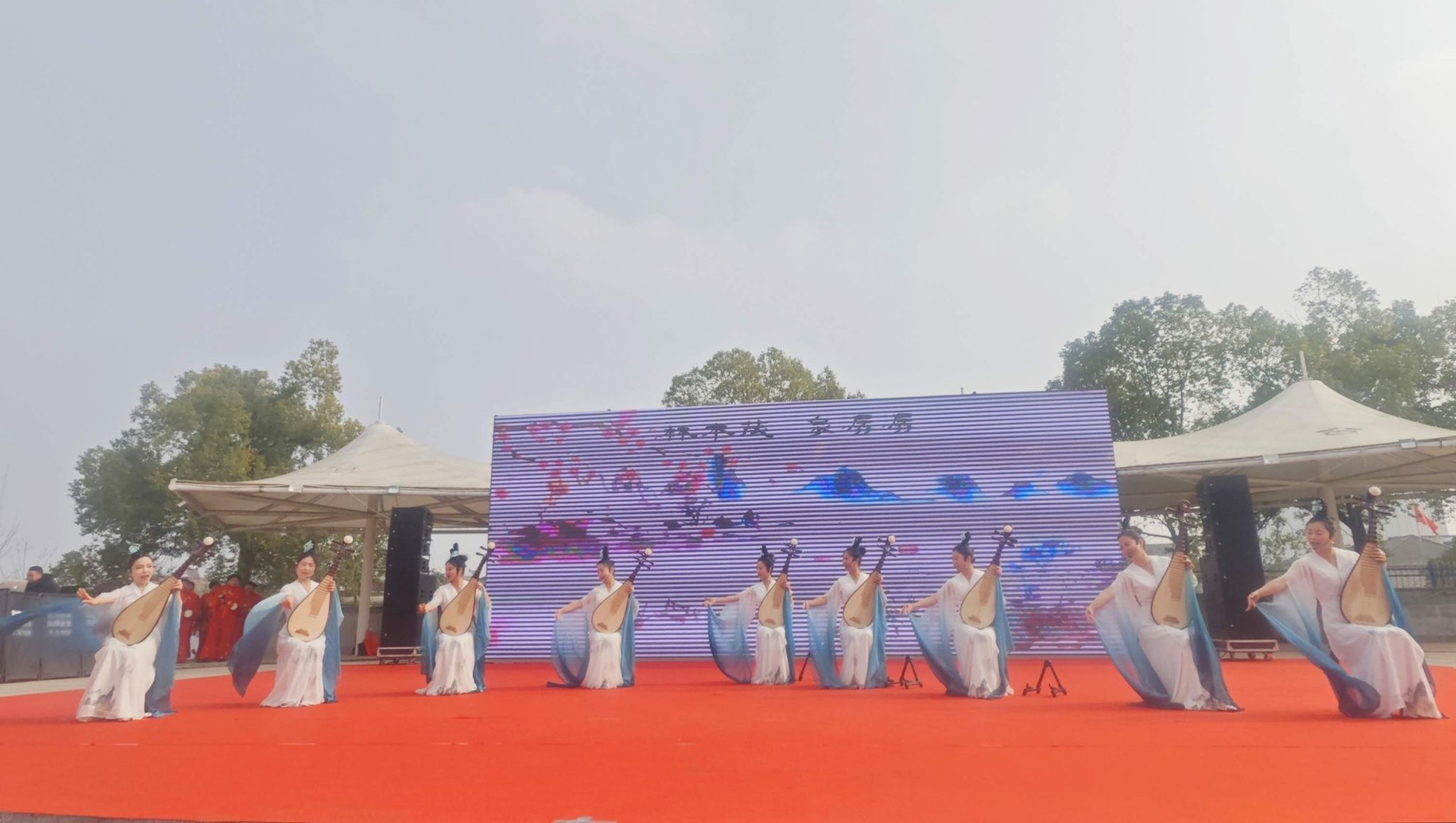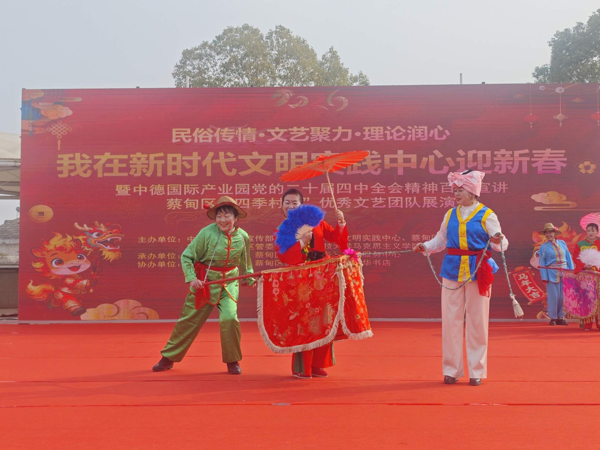 百姓舞台上,文艺展演精彩上演。从激昂的威风锣鼓到展现地域风情的舞蹈《我在蔡甸等你》,从诙谐生动的民俗表演《推车赶会》到融合传统与潮流演绎方式的琵琶弹唱《时代赞歌》,12个由辖区内各新时代文明实践所精选的节目依次登场,以艺术形式诠释政策理念与时代精神,营造出浓厚节日氛围。