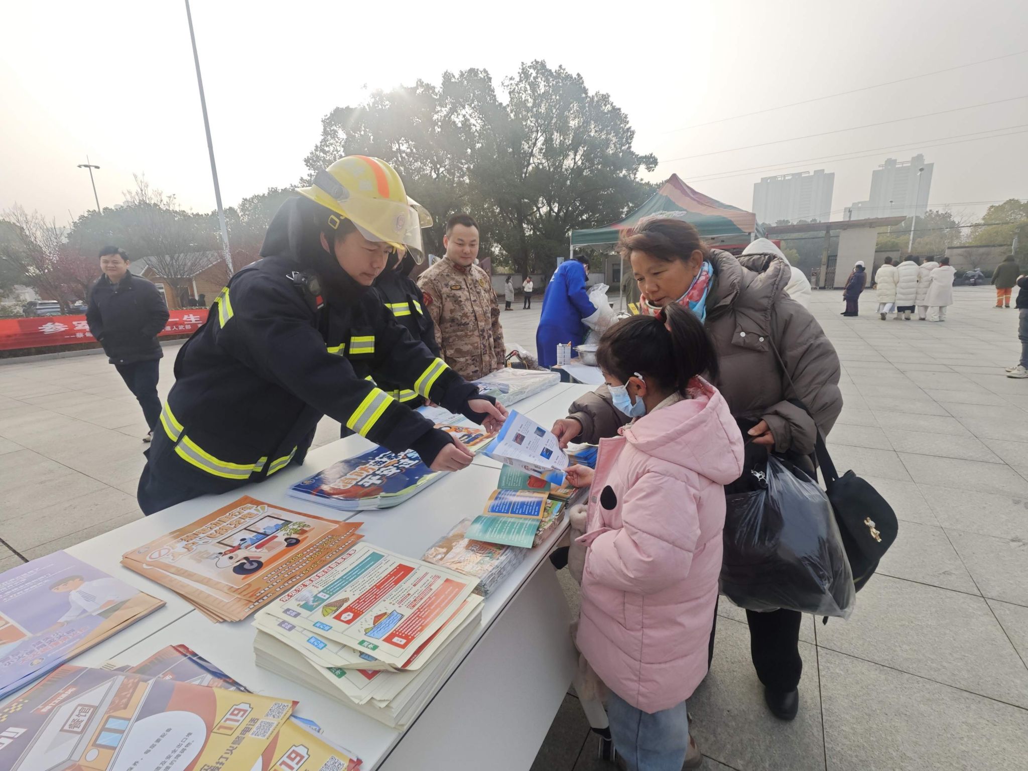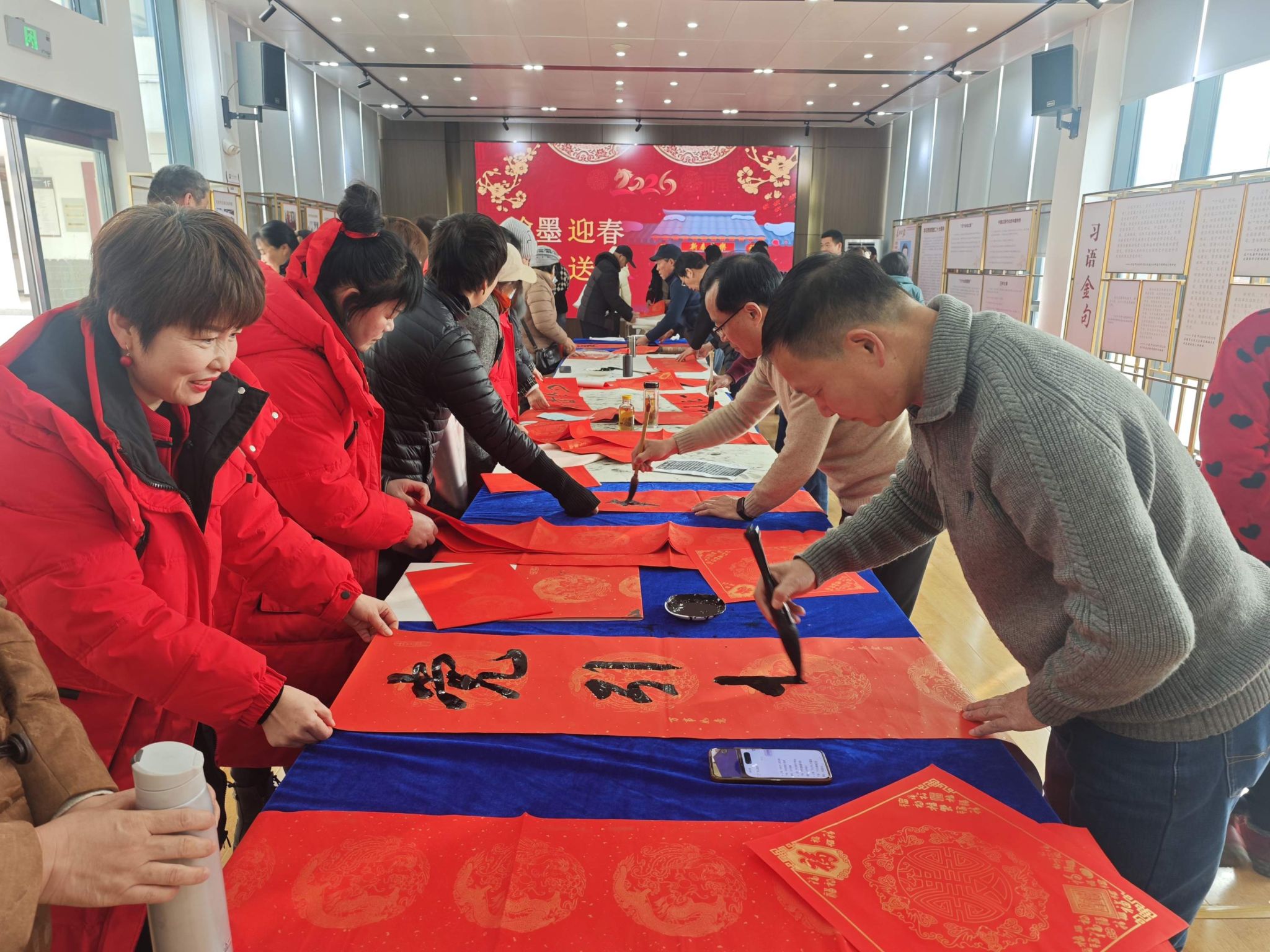 民俗体验区同样人气十足。奓山街道书法协会的志愿者们现场挥毫,送出130多副寓意吉祥的春联。一旁的年货市集汇集了琳琅满目的本土特产,烟火气浓郁。综合服务展位前也围满了群众,既有街道联合消防大队开展的冬春火灾防控宣传,也有武装部设立的征兵咨询点,吸引不少青年驻足了解。