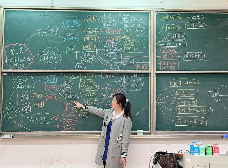 孙蕊芳认为现代的PPT教学进程较快,尤其是理论教学在讲述中不容易让学生印象深刻,将理论结构和重要内容以思维导图的形式展现在黑板上,在讲解相应章节时可以让学生对照思路理解内容,将传统板书教学与现代化教学方式结合使用,可以很好地帮助学生提高学习效率,保证课堂抬头率。“我希望学生在学习这门理论课时,能够利用好课堂时间,迅速掌握理论架构与理解思路,清晰把握重要事件与史实。”孙蕊芳说。