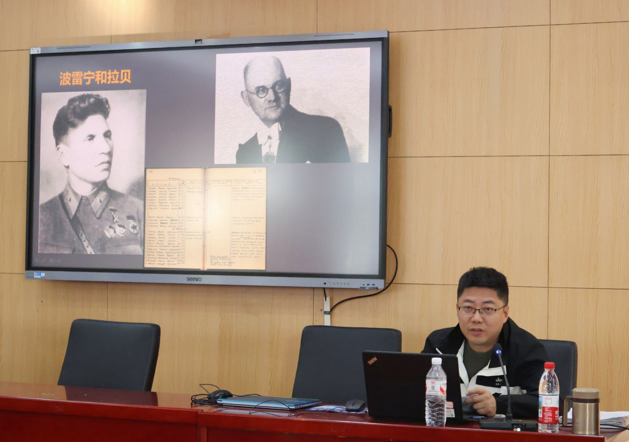 “新闻是明天的历史,历史是昨天的新闻,”谌达军一边展示苏联志愿军来华路线图,一边提出,“历史和新闻不可分割,既要把握当下,也要把握历史的景深。”在追寻历史的过程中,他找到了一本详细记录着苏联志愿军大队长波雷宁的航空记录记录本,同时还找到《拉贝日记》中对应时间的记载,有力反驳了当时有关苏联虚假支援的言论。